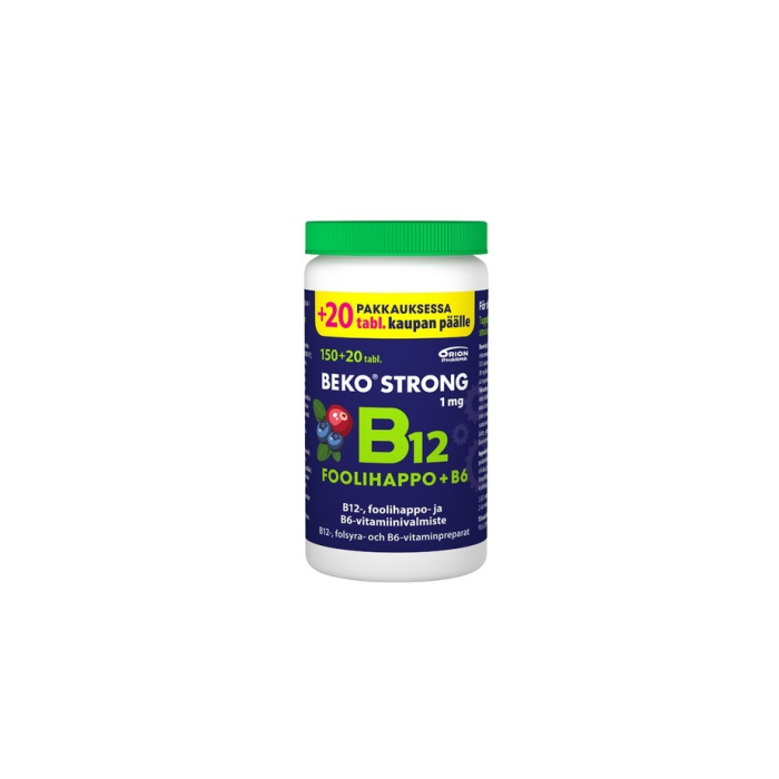 Muistin, jaksamisen, hermoston ja vastustuskyvyn tueksi! Marjaisan mustikka-karpalon makuinen, helposti suussa hajoava, pureskeltava tabletti. Sisältää 1 mg B12-, 20 mg B6-vitamiinia sekä 400 mikrog foolihappoa. B12, B6-vitamiini sekä foolihappo edistävät normaaleja psykologisia toimintoja, immuunijärjestelmän normaalia toimintaa sekä auttavat vähentämään väsymystä ja uupumusta. B12, -ja B6-vitamiinit tukevat hermoston normaalia toimintaa. Laktoositon (maidoton), hiivaton, gluteeniton, sokeriton. Ei sisällä eläinperäisiä ainesosia. Ravintolisä. Pakkauskoot: 100 ja 150 tablettia.