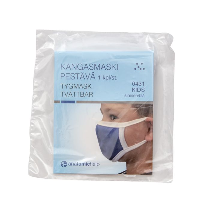 Kangasmaski pestävä lasten koko 100 % puuvilla sininen 1 kpl