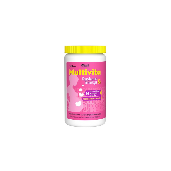 Laadukas ja monipuolinen monivitamiini erityisesti raskautta suunnitteleville, raskaana oleville ja imettäville naisille. Täydentää odotus- ja imetysajan ruokavalioita ja varmistaa elimistölle tärkeiden, päivittäisten vitamiinien ja kivennäisaineiden saannin. Sisältää muun muassa suomalaisen ravitsemussuosituksen mukaiset pitoisuudet D3-vitamiinia, jodia ja foolihappoa. Ei sisällä A-vitamiinia. Laktoositon, gluteeniton, hiivaton ja sokeriton. Ravintolisä.